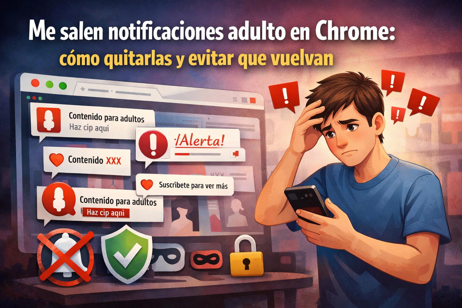 Si te están apareciendo notificaciones porno en Chrome (en PC o móvil), casi siempre es porque aceptaste sin querer permisos de notificaciones en una web. Aquí tienes una guía rápida para eliminarlas, limpiar permisos, revisar extensiones sospechosas y evitar que vuelva a pasar.
